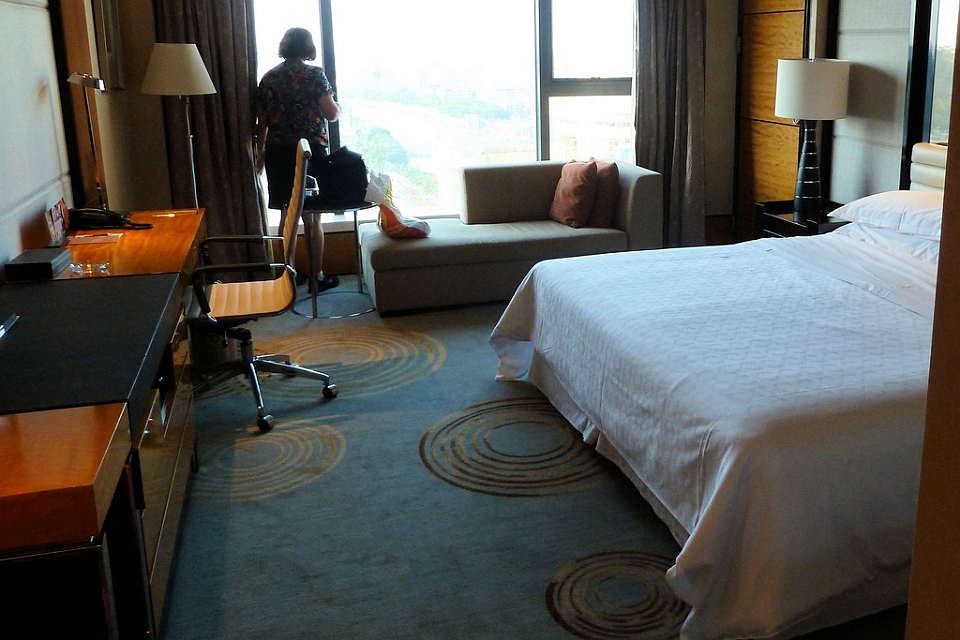 6 Hôtel Sheraton à Zhongshan. Gisèle examine les lieux